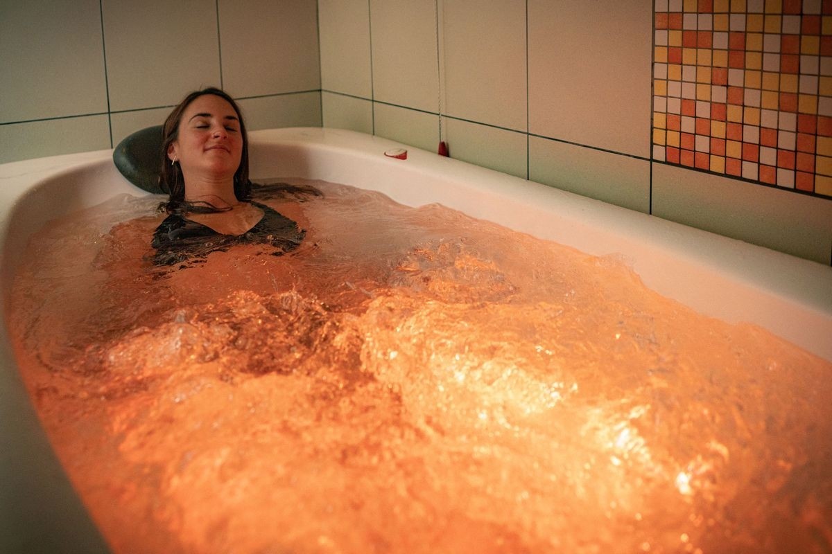 | Bain bouillonnant et Hydromassant aux huiles essentielles - 10 min Immergé dans l’eau thermale, le bouillonnement constant agit sur la microcirculation alors que le bain hydro massant stimule la circulation et tonifie les tissus par des jets le long du corps Douche massante - 10 min Une pluie d’eau tiède effectue un massage par vagues successives de la nuque au bas du dos pour un effet décontracturant et relaxant. A l’argile pour éliminer les toxines - 20 min Extraite sur le territoire français, l’argile pure est malaxée avec l’eau thermale pour composer une texture crémeuse. Elle est appliquée à 39°environ. |
